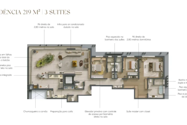 Apartamento batel, 3 suítes, 219 m² privativos, 3 vagas de garagem.