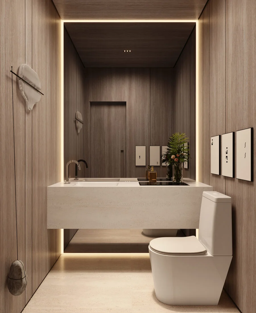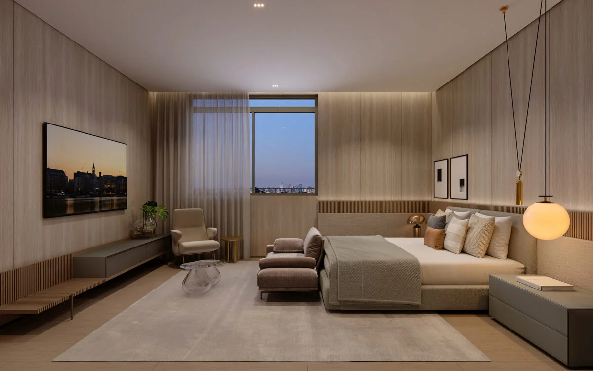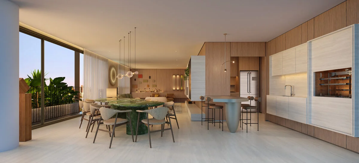 Elegância atemporal em ambientes leves e acolhedores. Áreas comuns que serão entregues decoradas e mobiliadas, com projeto de Fernanda Marques.