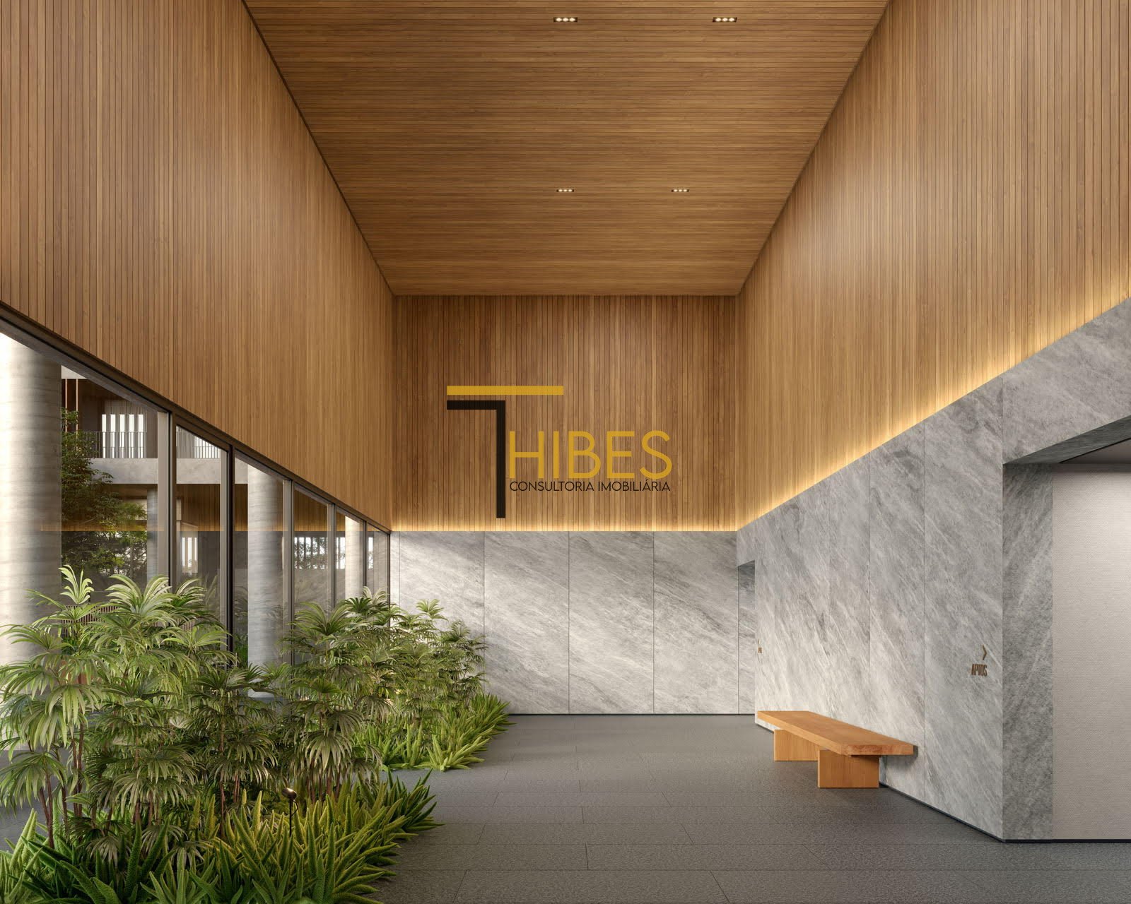 – Halls sociais com piso em granito cinza