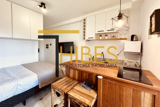 Apartamento studio, bigorrilho/champagnat, 21 m² privativos, totalmente mobiliado.