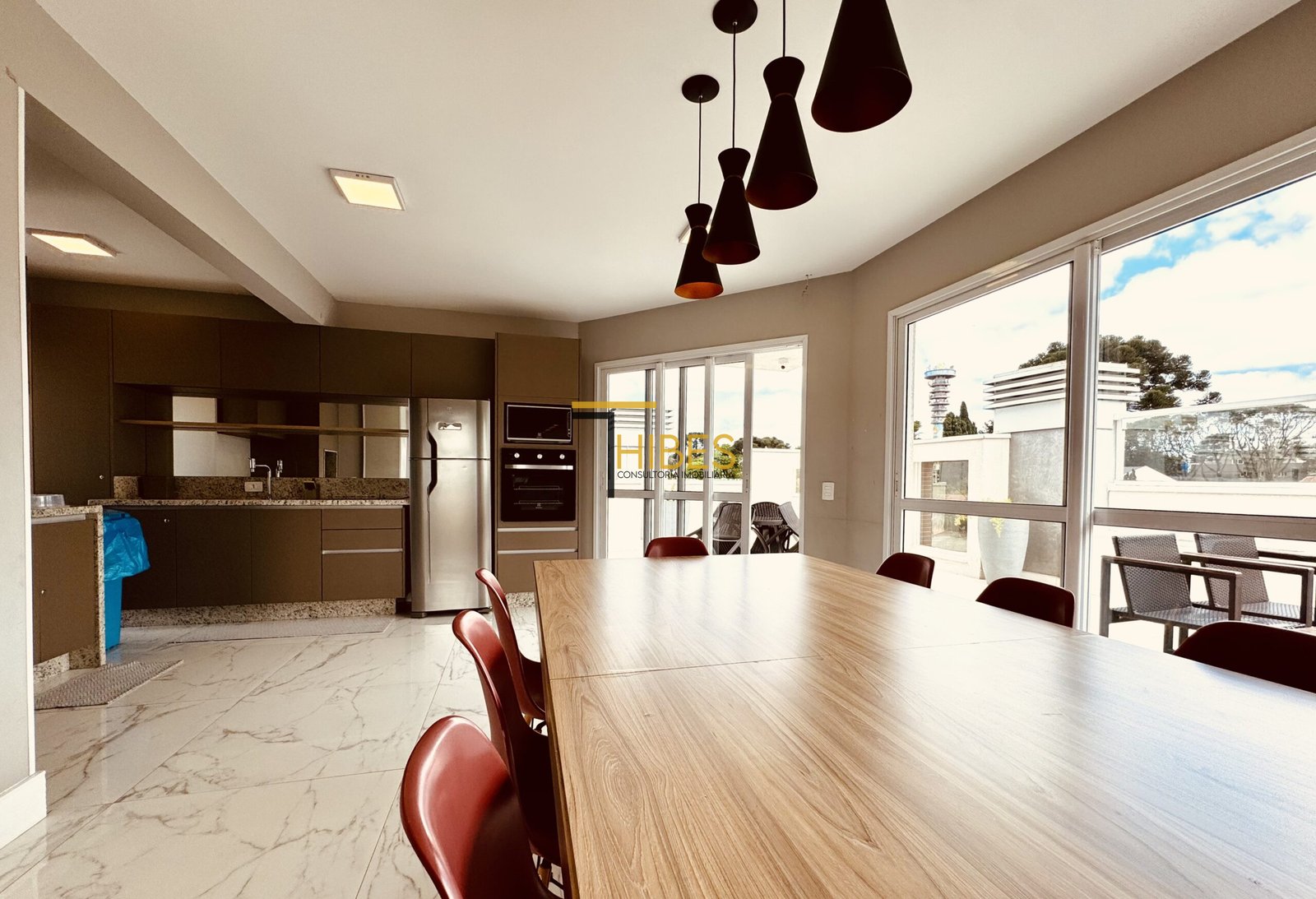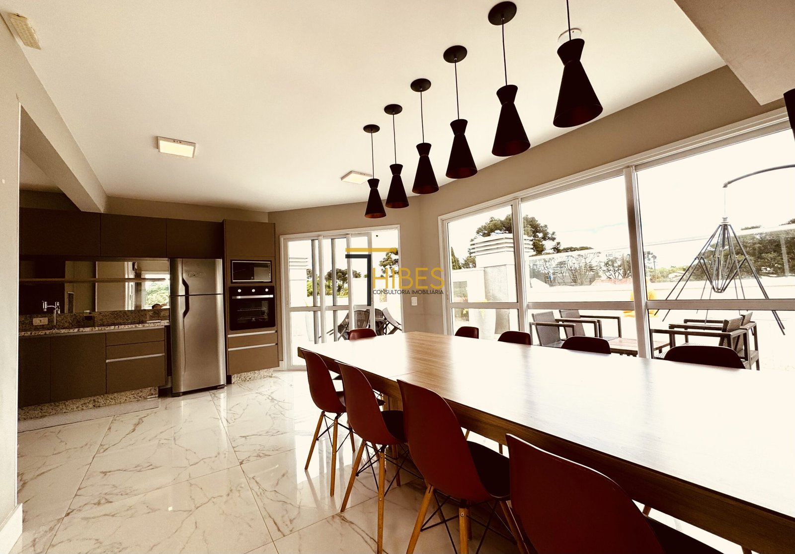 Salão de fesras com espaço gourmet;