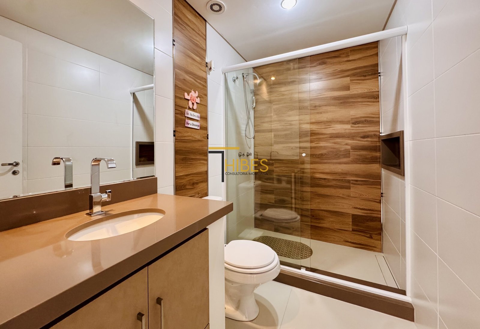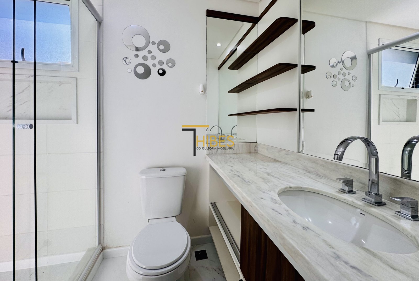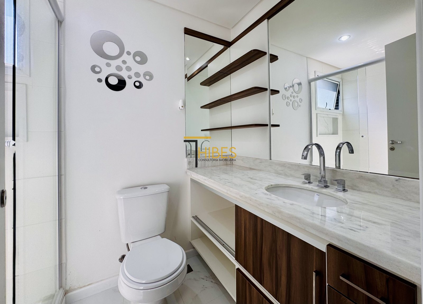 . Banheiro social e suíte com armário, espelho e bóx;
