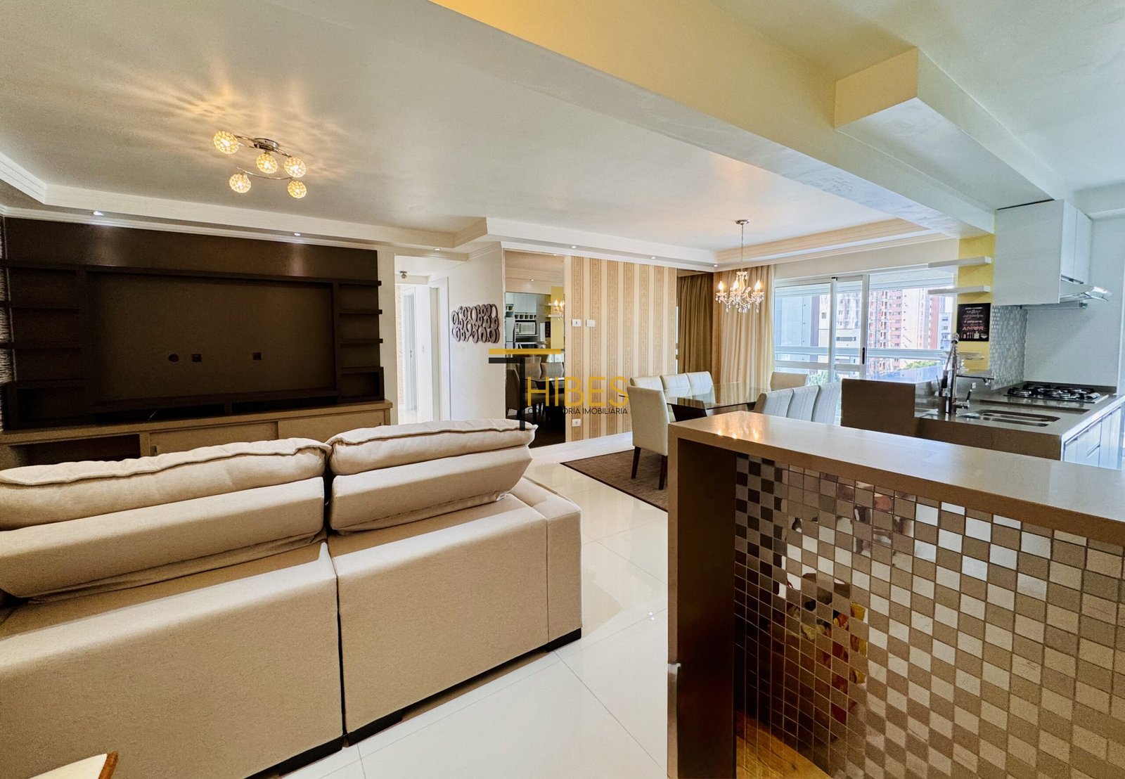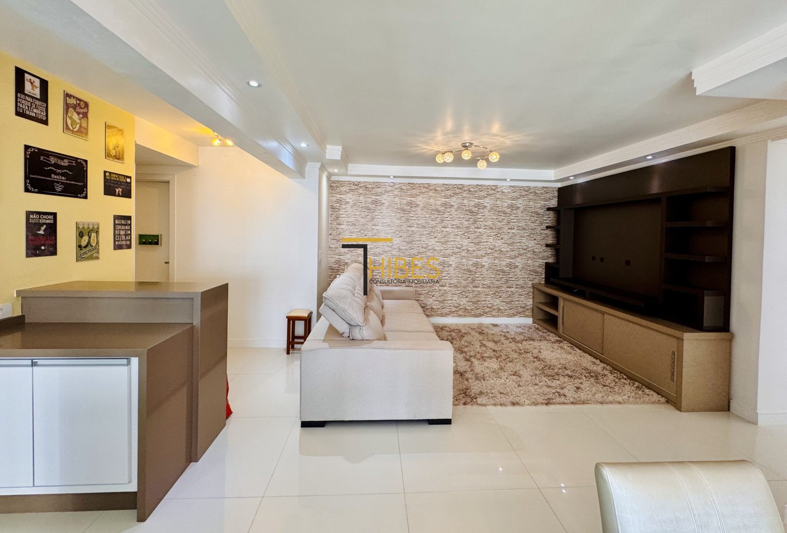 . Sala de estar com painel para a TV;