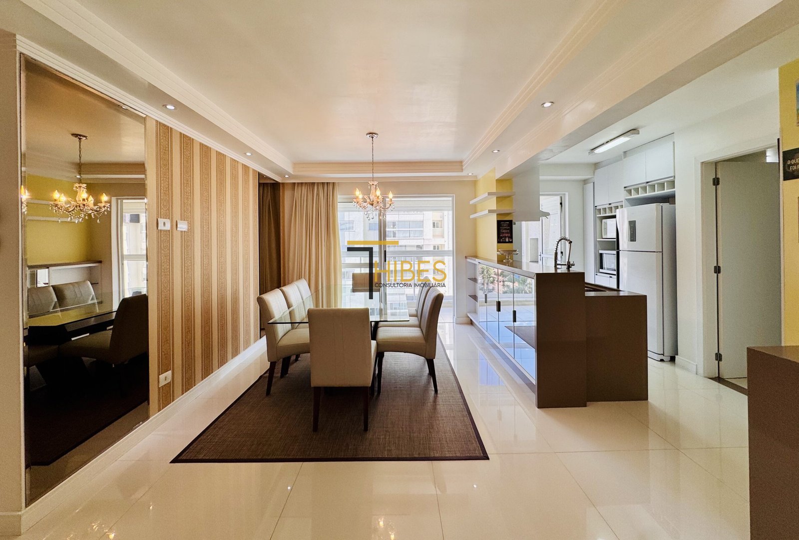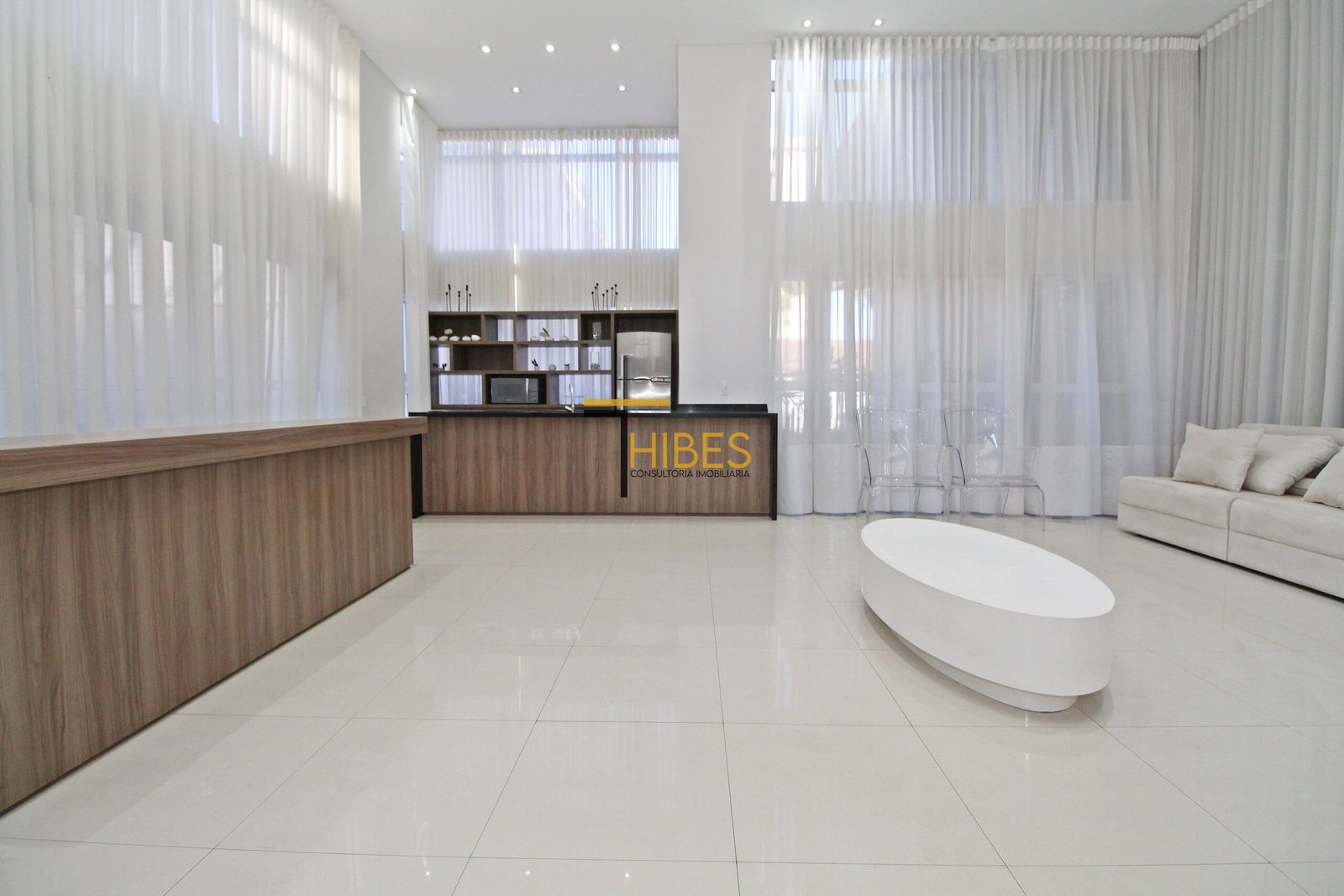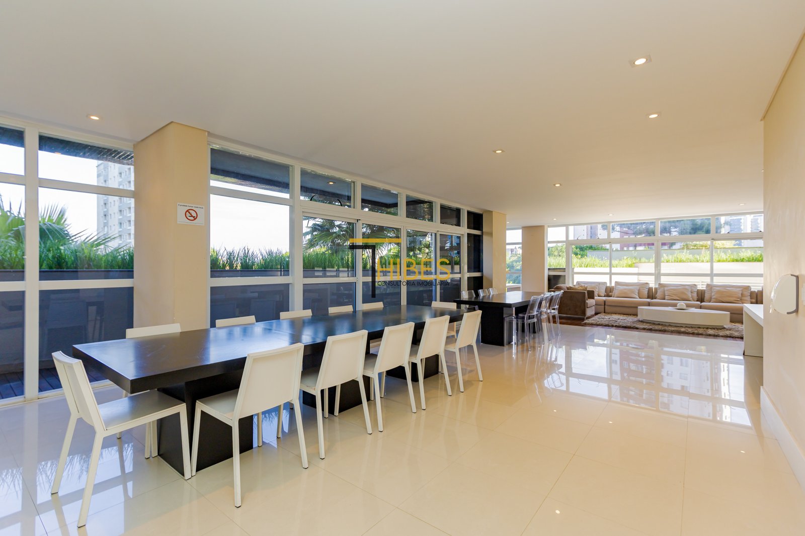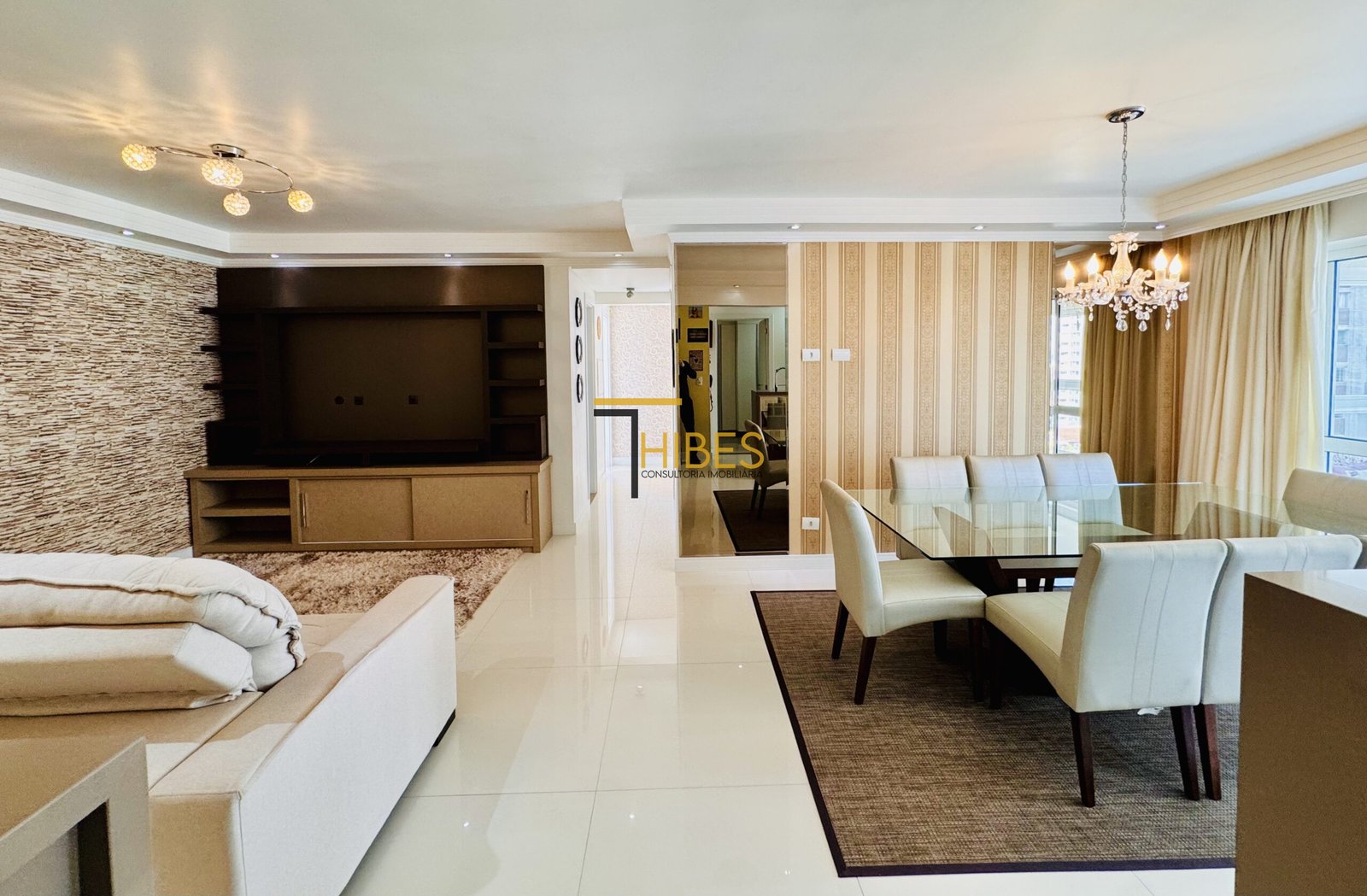 . Piso porcelanato na sala de estar e jantar;