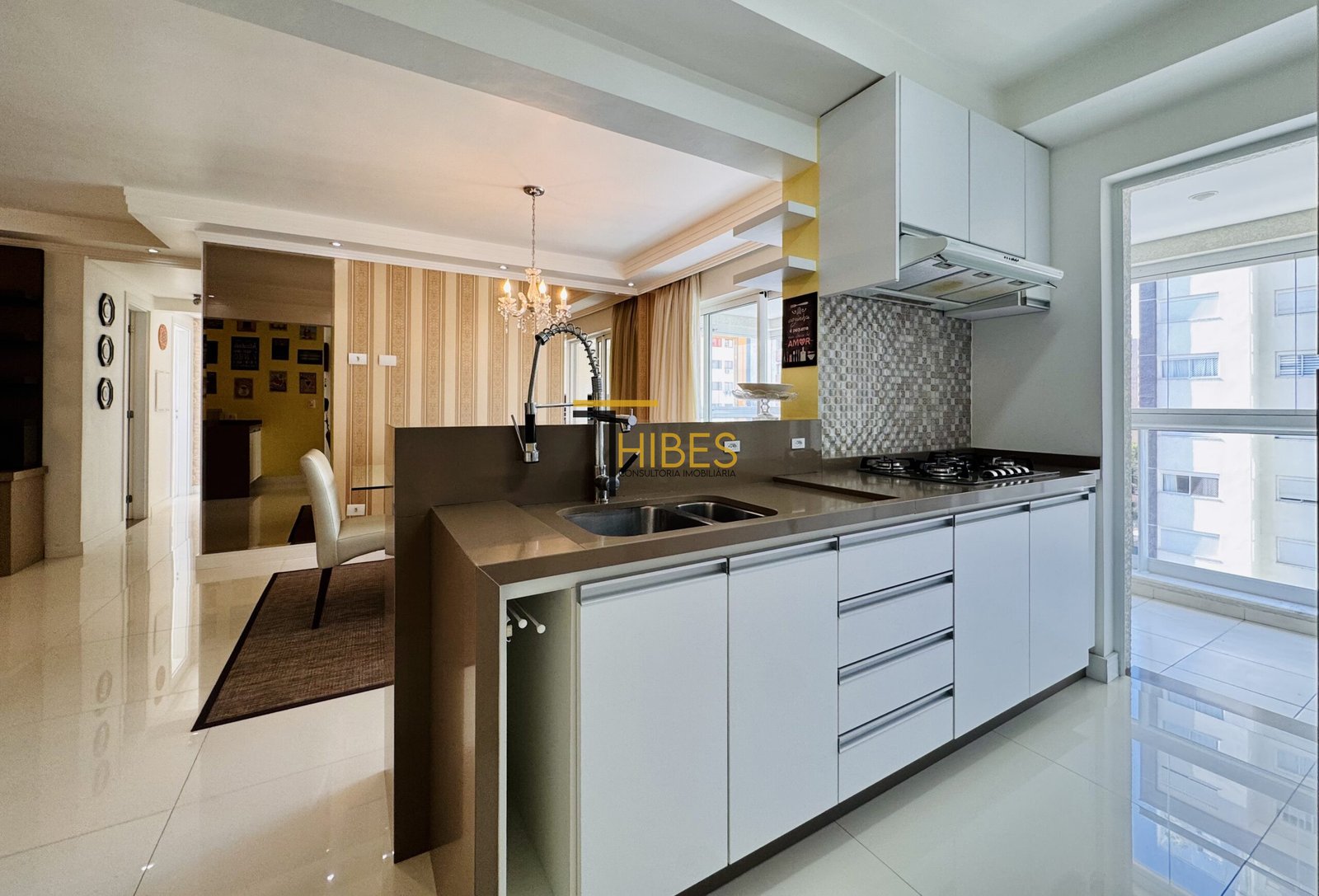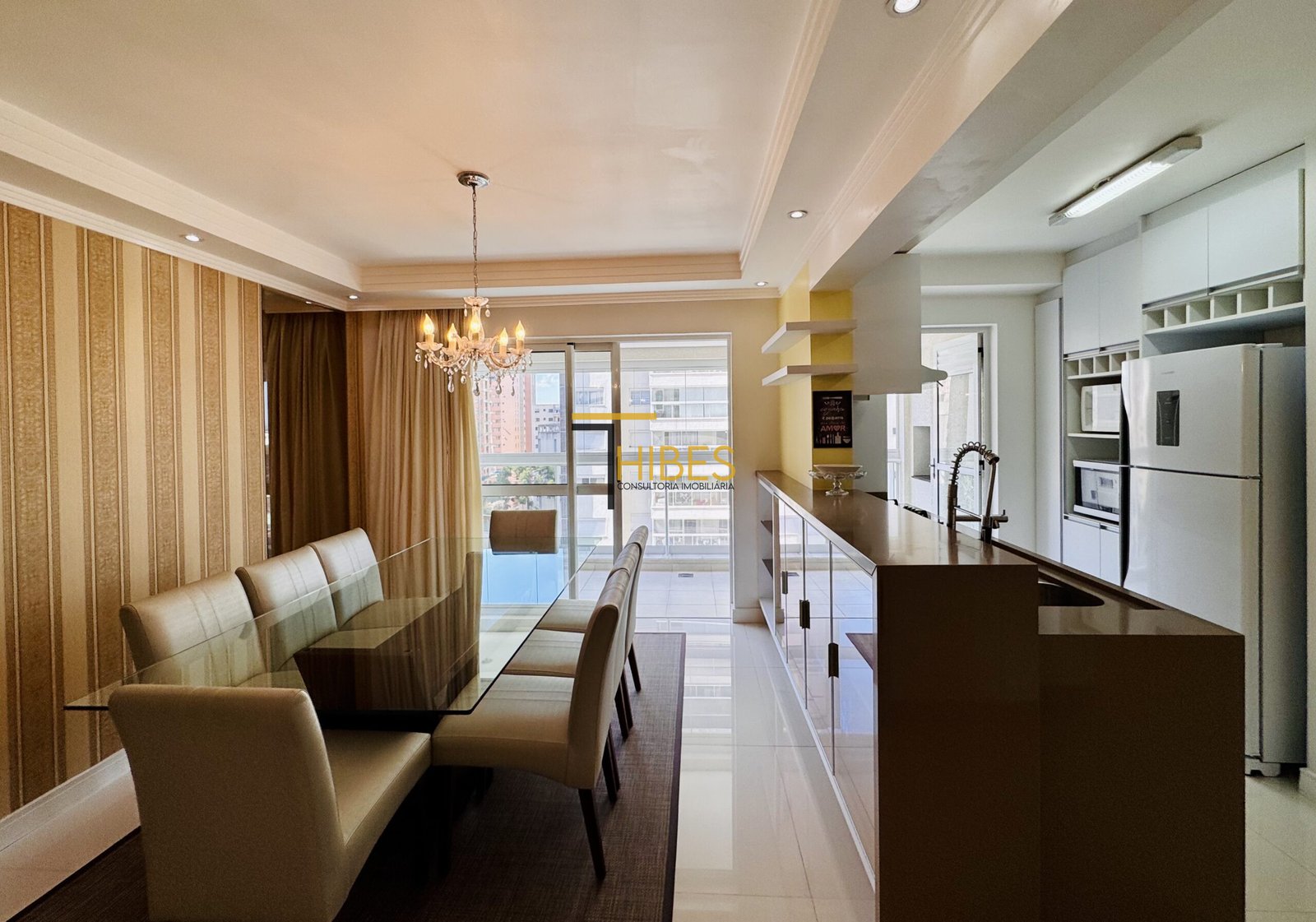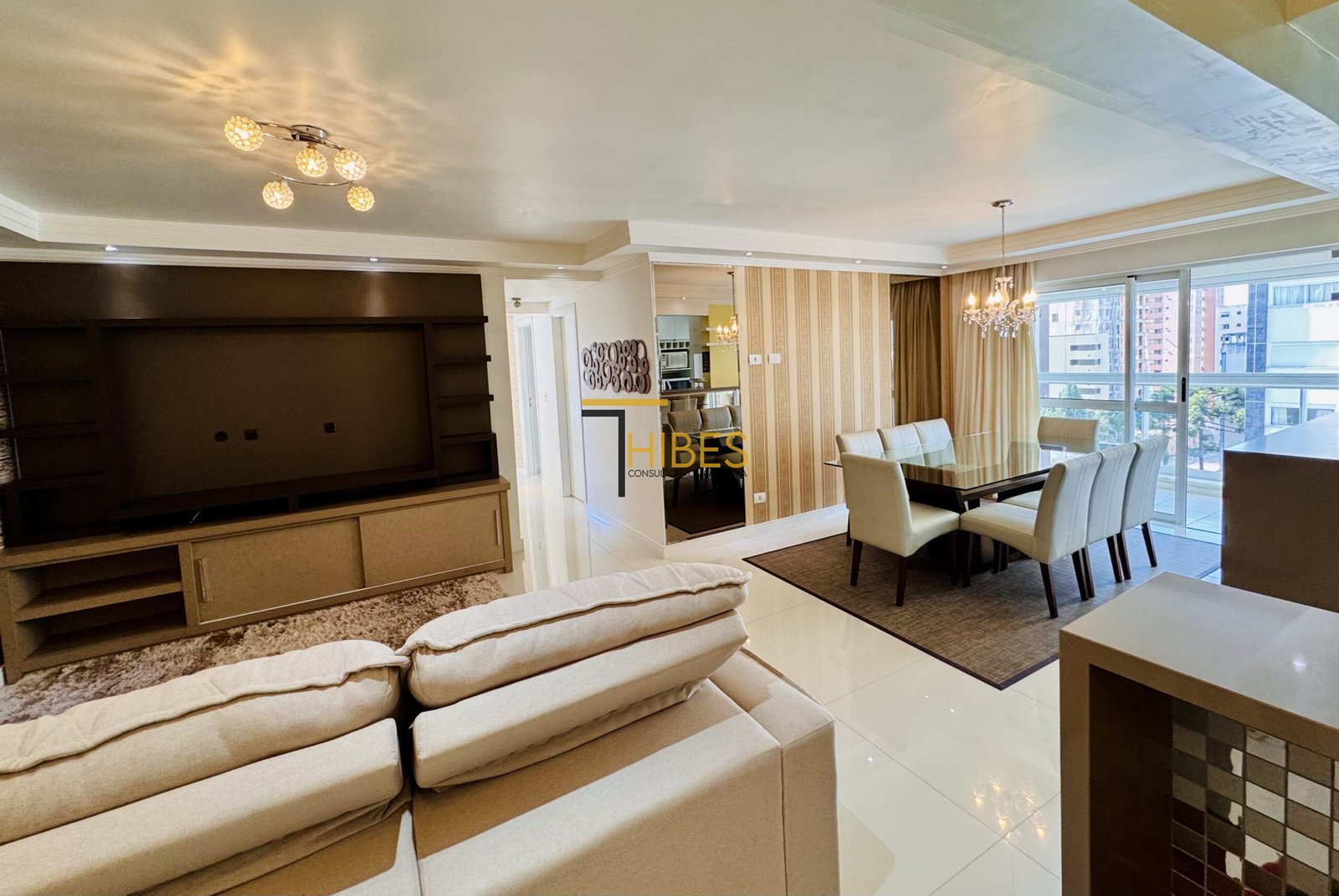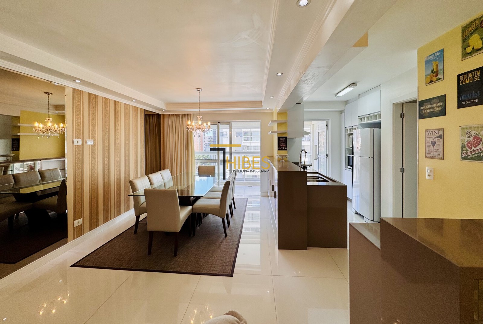 . Piso porcelanato na sala de estar e jantar;