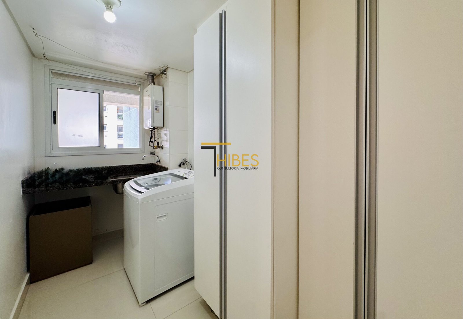 . Lavanderia com Tanque, armários, aquecedor e máquina de lavar;